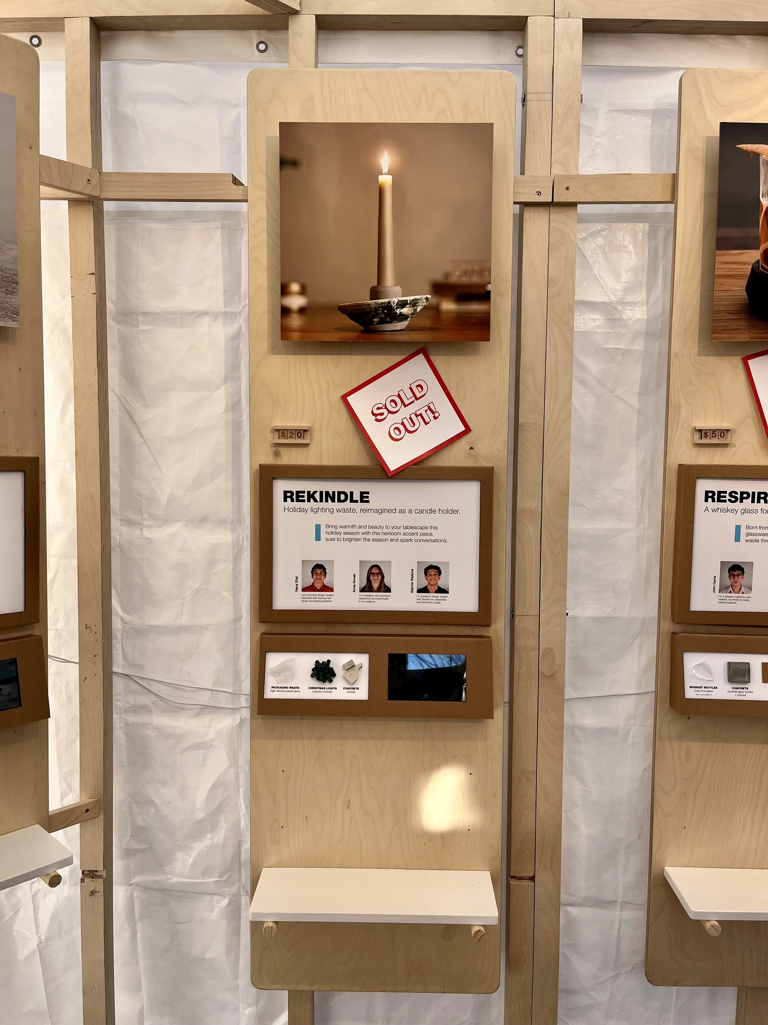 ReKindle is an elegant holiday luminaire crafted from recycled Christmas lights and post-consumer plastics, including milk jugs, water jugs, cosmetic bottles, detergent containers, and other everyday packaging. Designed to elevate your space, this sculptural candlestick holder is made from discarded materials into a refined, meaningful centerpiece for your home. Thoughtfully designed and sustainably made, ReKindle brings new life and a warm, seasonal glow from materials that were once waste.